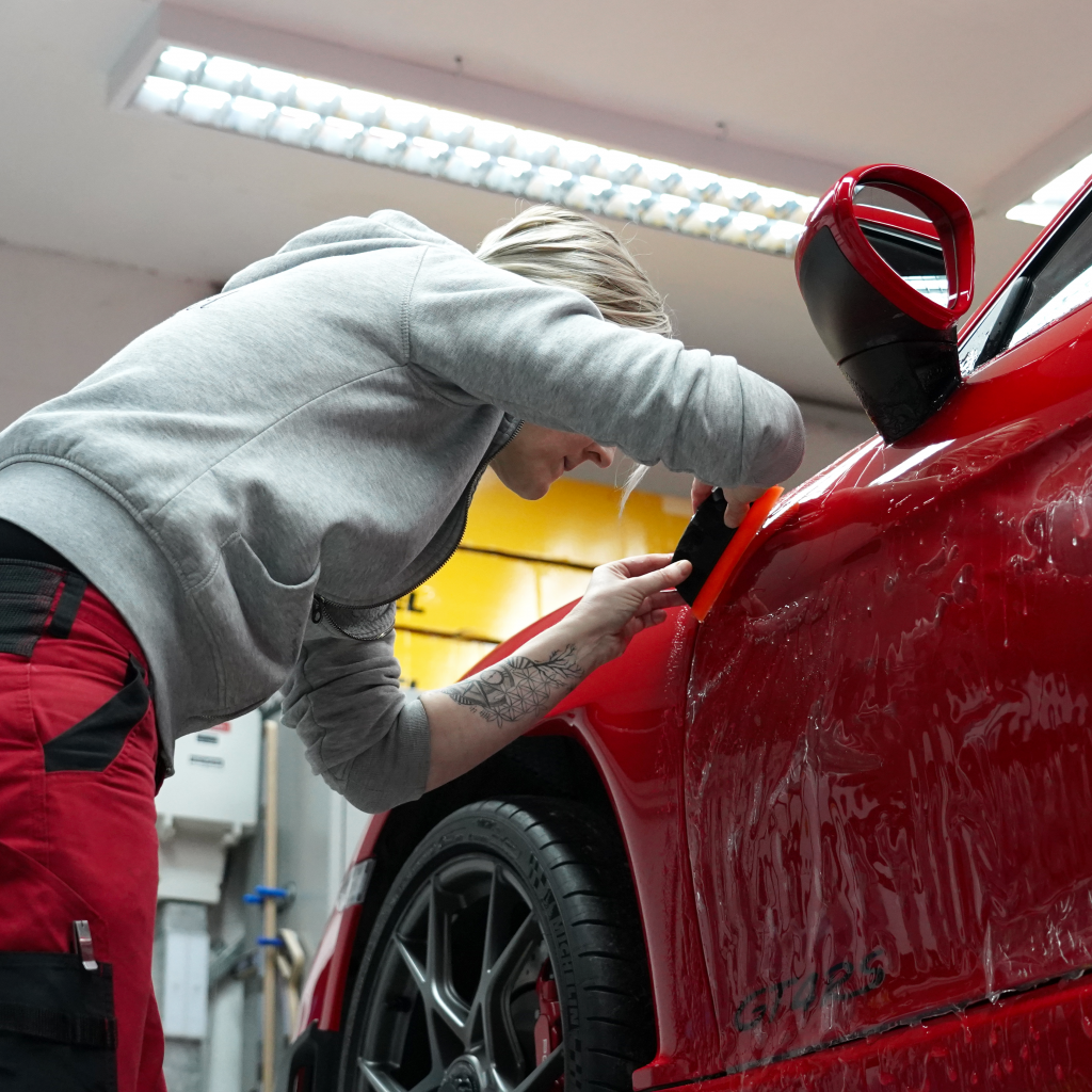 Ich arbeite mit Xpel Ultimate Plus, der hochwertigsten Lackschutzfolie, die derzeit am Markt erhältlich ist. Durch die Zusammenarbeit mit Xpel, habe ich Zugriff auf eine Datenbank, die Zuschnitte für nahezu jedes Bauteil aller gängigen Premiummarken (Mercedes, BMW, Audi, Porsche, Lamborghini, Ferrari …) aber auch der meisten anderen in Europa erhältlichen Marken (Ford, VW, Renault, Opel, Peugeot …) enthält.